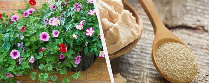 Een dergelijke bemesting van petunia’s door volksremedies wordt bereid uit 200 gram vers geperste gist en een liter warm water. Laat het mengsel een paar uur trekken, verdun het met water in een verhouding van 1:10 en giet een glas per dag onder de wortels. Gistmest is vooral nuttig in de winter, wanneer de immuniteit van de planten verzwakt is.