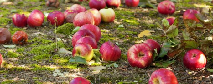 Na een dag of twee onder een boom te hebben gelegen, kan bedorven fruit schade aanrichten aan de tuin. Rotte appels beschadigen gras en trekken ongedierte aan /.